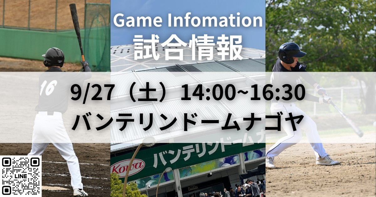 【試合情報】9/27(土)バンテリンドームナゴヤ